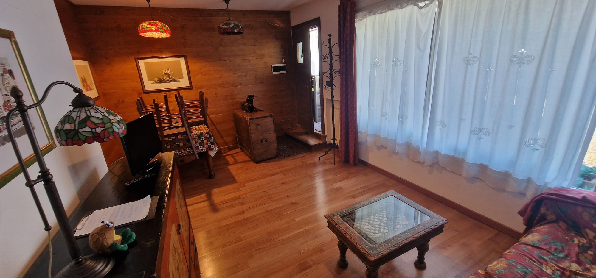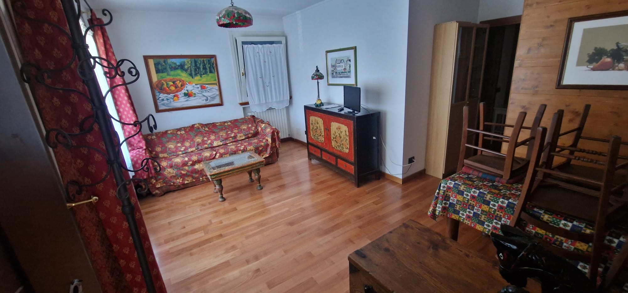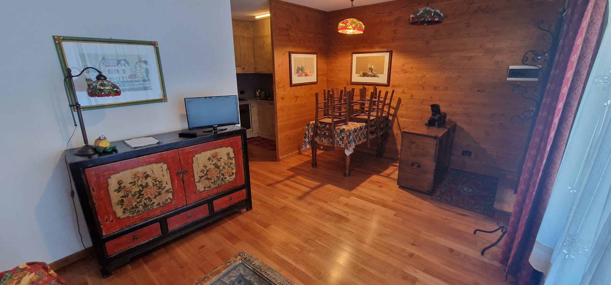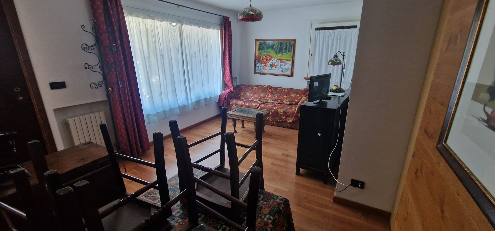 Appartamento ristrutturato da poco, comodo per 3, massimo 4 persone e comprende un bussolotto per appoggiare gli attrezzi per sciare, un salone con divano letto, angolo cucina, camera matrimoniale, piccola cameretta con letto a castello, bagno principale e piccolo bagno di servizio.