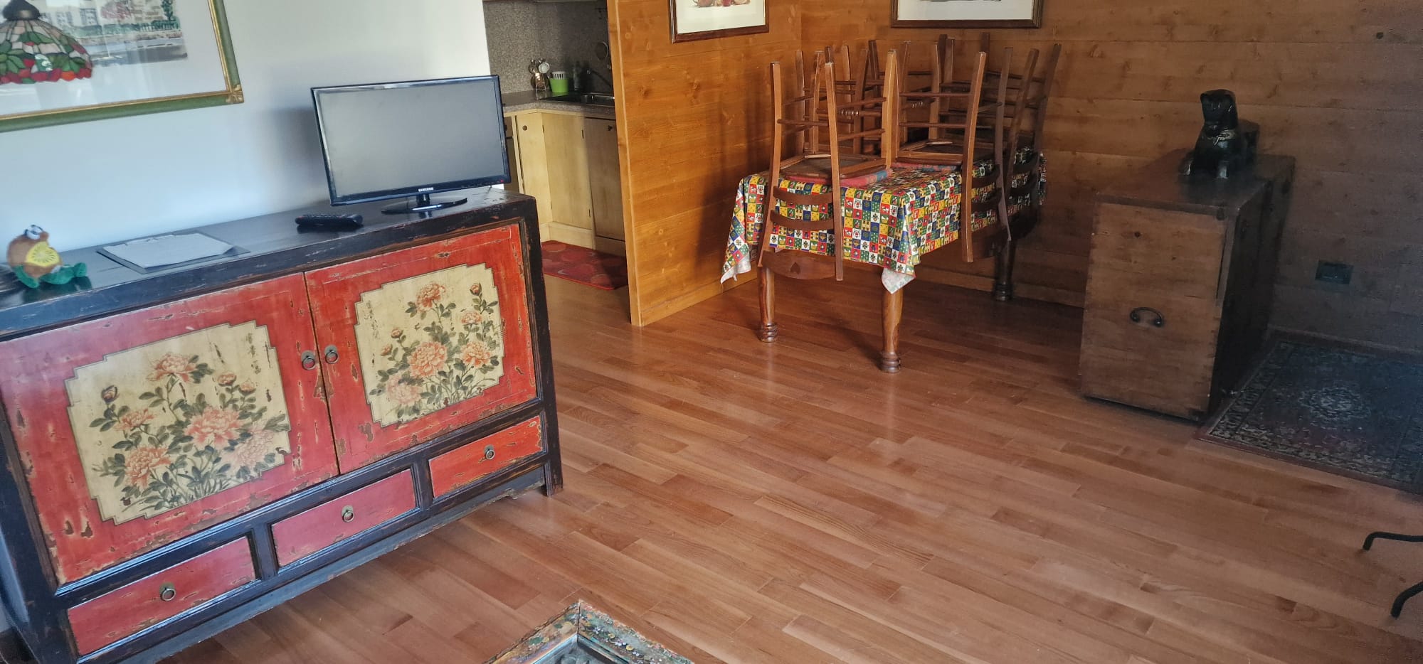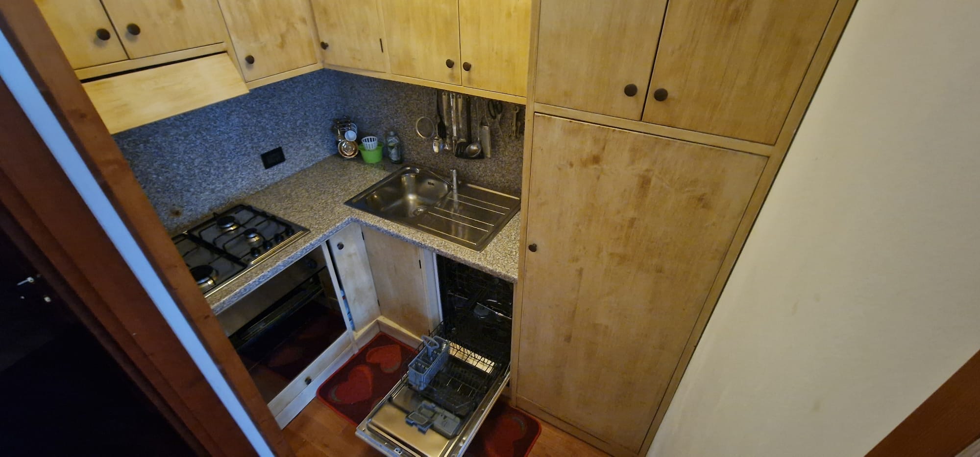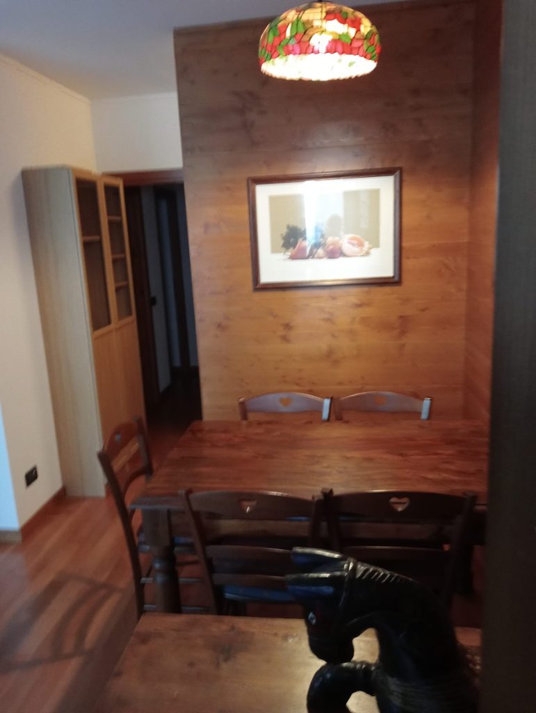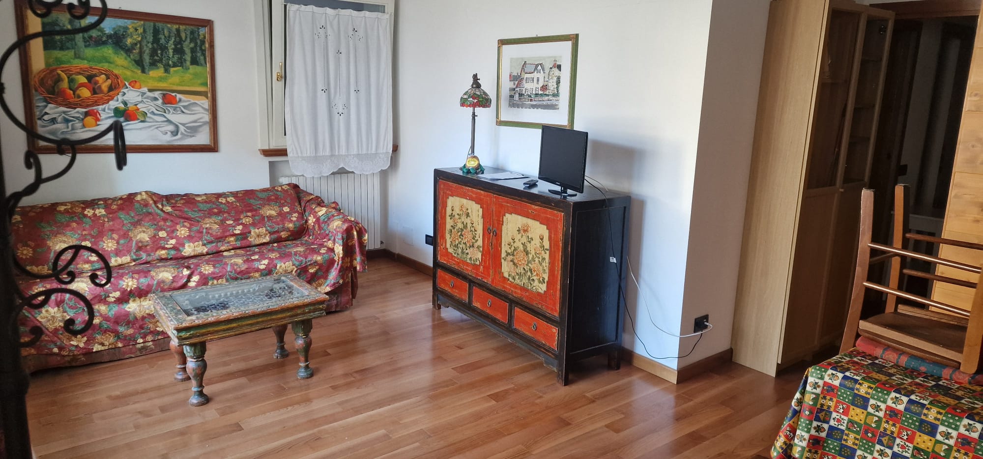 Appartamento ristrutturato da poco, comodo per 3, massimo 4 persone e comprende un bussolotto per appoggiare gli attrezzi per sciare, un salone con divano letto, angolo cucina, camera matrimoniale, piccola cameretta con letto a castello, bagno principale e piccolo bagno di servizio.